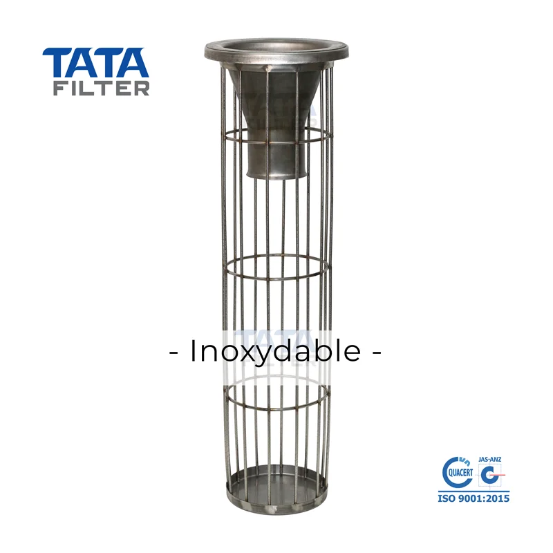 - Với các đặc tính nổi bật (cơ lý tính, chống ăn mòn, chịu nhiệt), thép inox là vật liệu tốt nhất được sử dụng để gia công khung lồng túi lọc bụi và các thành phần khác nhau, như: thân khung (dây dọc, vòng tăng cứng), miệng, đỉnh, đáy, khớp nối, venturi. Độ bền kéo của sợi dây inox và tính hàn rất cao giúp tăng tính chịu lực, chống biến dạng, chống gãy cho sản phẩm khung lồng túi lọc bụi.